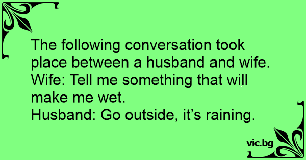 Wife: Tell me something that will make me wet.