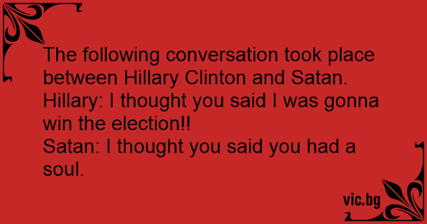 The following conversation took place between Hillary Clinton and Sатаn.