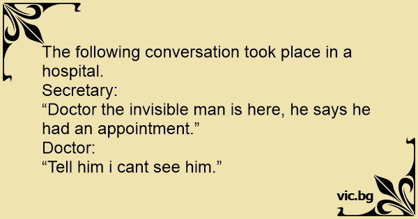 “Doctor the invisible man is here, he says he had an appointment.”