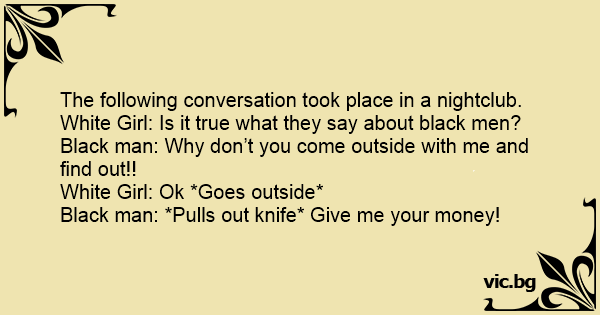 Black man: *Pulls out knife* Give me your money!
