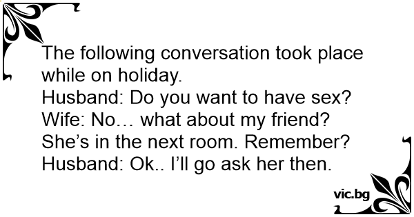 Wife: No… what about my friend? She’s in the next room. Remember?