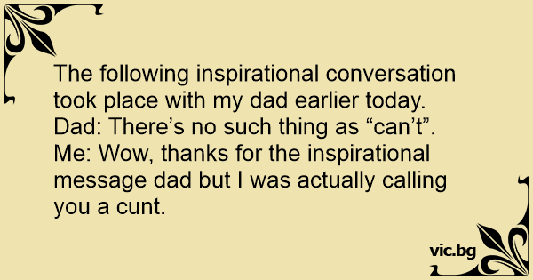 Me: Wow, thanks for the inspirational message dad but I was actually calling you a сunт.
