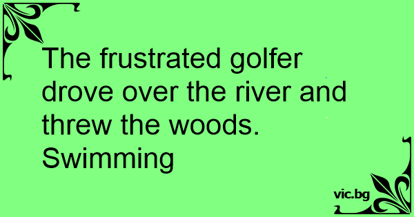 The frustrated golfer drove over the river and threw the woods.
