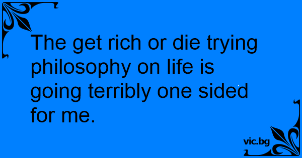 The get rich or die trying philosophy on life is going terribly one sided for me.