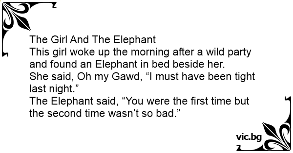 The Elephant said, “You were the first time but the second time wasn’t so bad.”