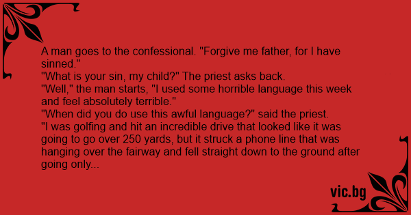 A man goes to the confessional. "Forgive me father, for I have sinned."