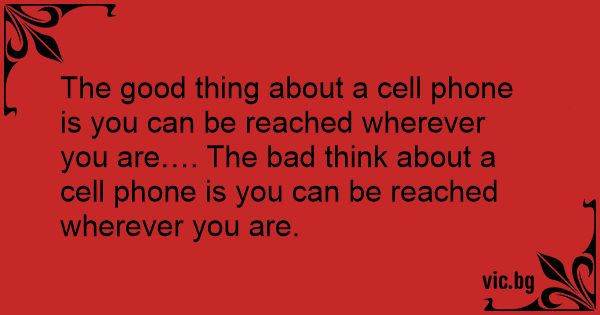 The good thing about a cell phone is you can be reached wherever you are…. The bad think about a cell phone is you can be reached wherever you are.