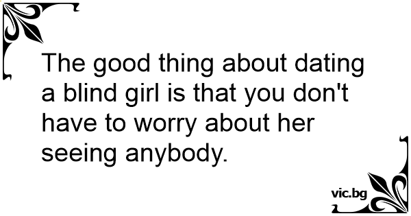 The good thing about dating a blind girl is that you don't have to worry about her seeing anybody.