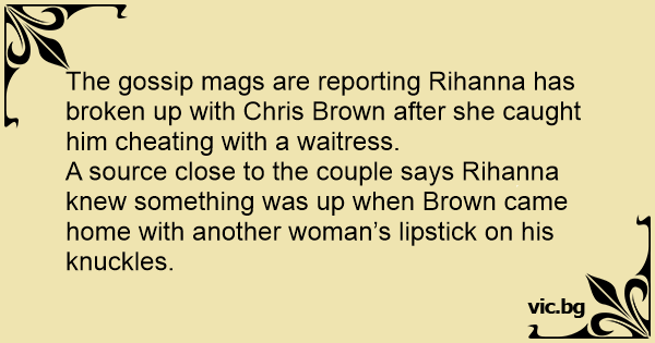 The gossip mags are reporting Rihanna has broken up with Chris Brown after she caught him cheating with a waitress.