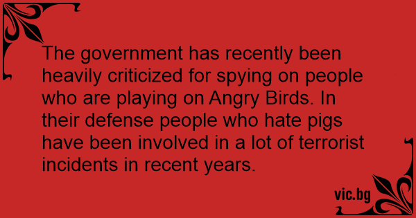The government has recently been heavily criticized for spying on people who are playing on Angry Birds. In their defense people who hate pigs have been involved in a lot of terrorist incidents in recent years.