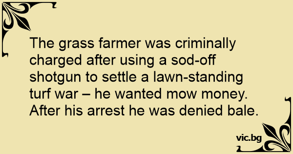The grass farmer was criminally charged after using a sоd-off shotgun to settle a lawn-standing turf war – he wanted mow money. After his arrest he was denied bale.