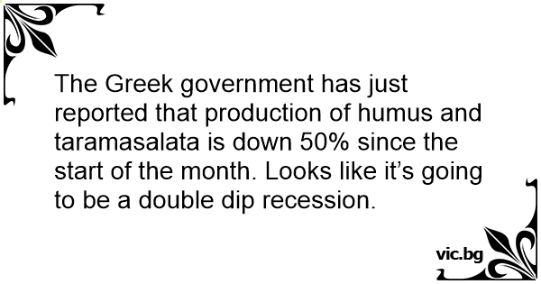 The Greek government has just reported that production of humus and taramasalata is down 50% since the start of the month. Looks like it’s going to be a double dip recession.