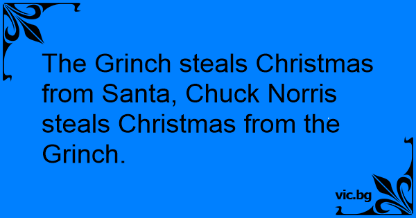 The Grinch steals Christmas from Santa, Chuck Norris steals Christmas from the Grinch.