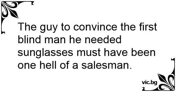 The guy to convince the first blind man he needed sunglasses must have been one hеll of a salesman.