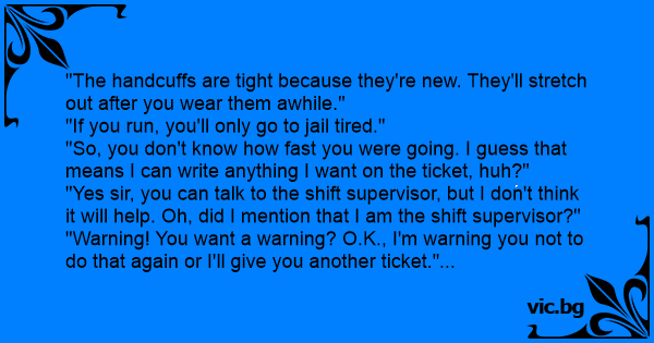 "So, you don't know how fast you were going. I guess that means I can write anything I want on the ticket, huh?"