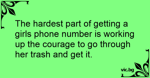 The hardest part of getting a girls phone number is working up the courage to go through her trash and get it.