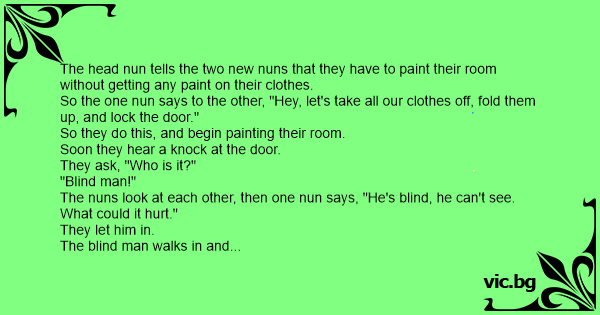 The nuns look at each other, then one nun says, "He's blind, he can't see. What could it hurt."