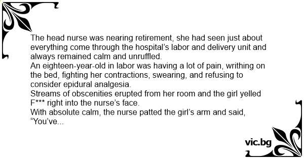 The head nurse was nearing retirement, she had seen just about everything come through the hospital’s labor and delivery unit and always remained calm and unruffled.