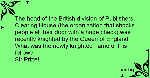 The head of the British division of Publishers Clearing House (the organization that shocks people at their door with a huge check) was recently knighted by the Queen of England.