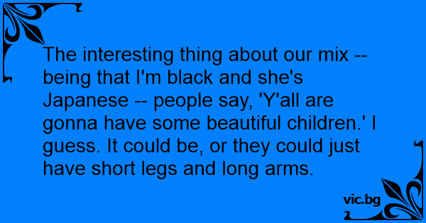 The interesting thing about our mix -- being that I'm black and she's Japanese -- people say, 'Y'all are gonna have some beautiful children.' I guess. It could be, or they could just have short legs and long arms.