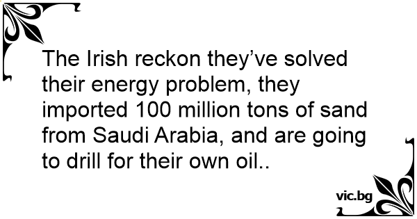 The Irish reckon they’ve solved their energy problem, they imported 100 million tons of sand from Saudi Arabia, and are going to drill for their own oil..