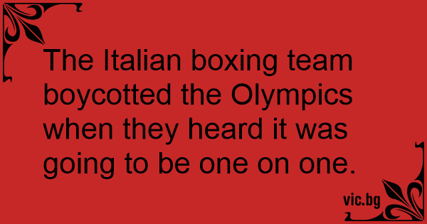 The Italian boxing team boycotted the Olympics when they heard it was going to be one on one.