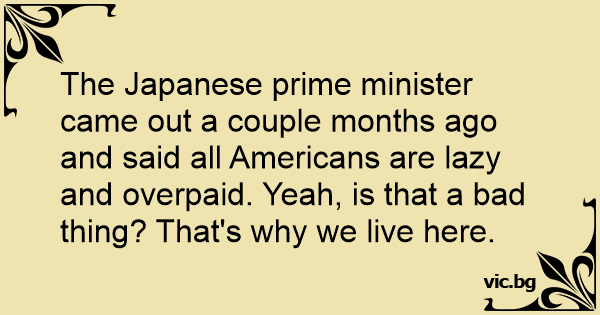 The Japanese prime minister came out a couple months ago and said all Americans are lazy and overpaid. Yeah, is that a bad thing? That's why we live here.