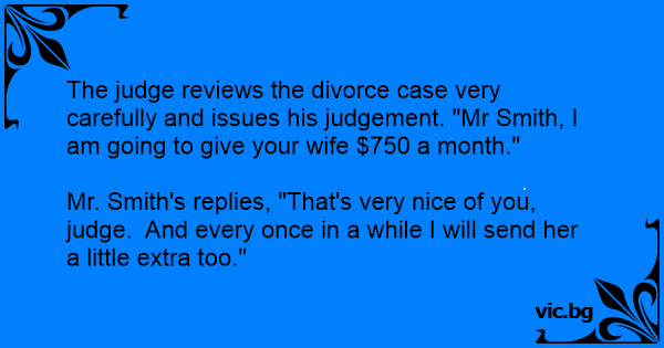 The judge reviews the divorce case very carefully and issues his judgement. "Mr Smith, I am going to give your wife $750 a month."