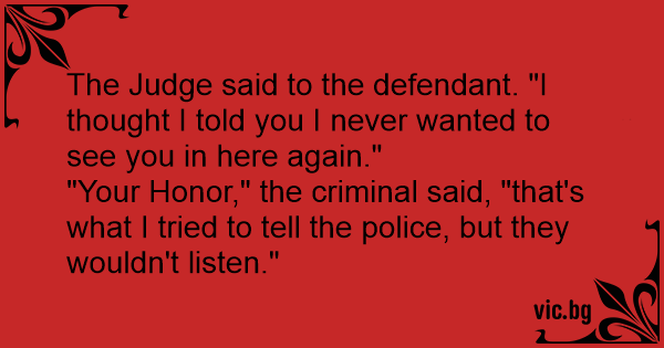 The Judge said to the defendant. "I thought I told you I never wanted to see you in here again."