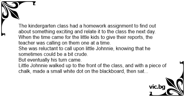 Little Johnnie walked up to the front of the class, and with a piece of chalk, made a small white dot on the blackboard, then sat back down.