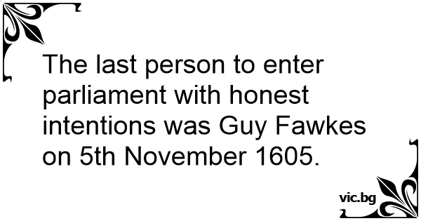 The last person to enter parliament with honest intentions was Guy Fawkes on 5th November 1605.