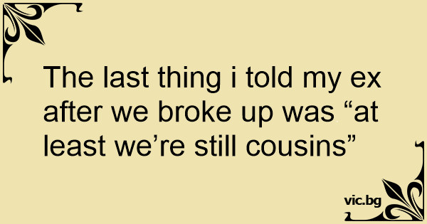 The last thing i told my ex after we broke up was “at least we’re still cousins”