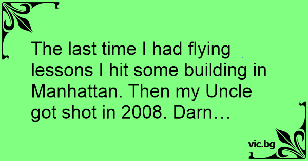 The last time I had flying lessons I hit some building in Manhattan. Then my Uncle got shot in 2008. Dаrn…