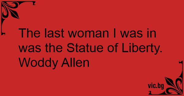 "Das letzte Mal war ich in einer Frau, als ich die Freiheitsstatue besucht habe." Woddy Ellen