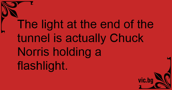 The light at the end of the tunnel is actually Chuck Norris holding a flashlight.
