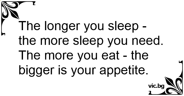 The longer you sleep - the more sleep you need. The more you eat - the вiggеr is your appetite.