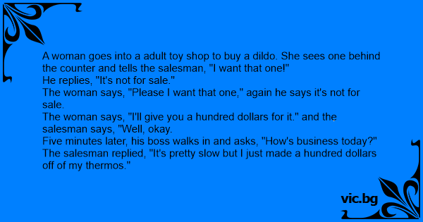 A woman goes into a adult toy shop to buy a dildо. She sees one behind the counter and tells the salesman, "I want that one!"