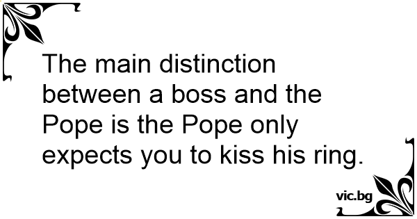 The main distinction between a boss and the Pope is the Pope only expects you to kiss his ring.