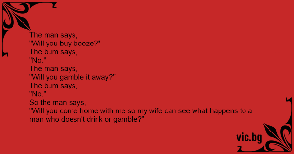 "Will you come home with me so my wife can see what happens to a man who doesn't drink or gamble?"