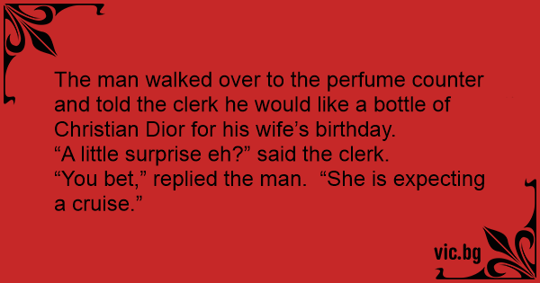 The man walked over to the perfume counter and told the clerk he would like a bottle of Christian Dior for his wife’s birthday.