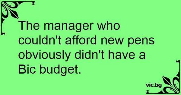 The manager who couldn't afford new pens obviously didn't have a Bic budget.