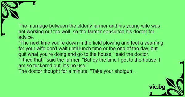The marriage between the elderly farmer and his young wife was not working out too well, so the farmer consulted his doctor for advice.
