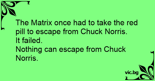 The Matrix once had to take the red pill to escape from Chuck Norris. It failed. Nothing can escape from Chuck Norris.