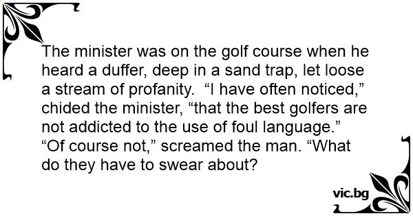The minister was on the golf course when he heard a duffеr, deep in a sand trap, let loose a stream of profanity. “I have often noticed,” chided the minister, “that the best golfers are not addicted to the use of foul language.”