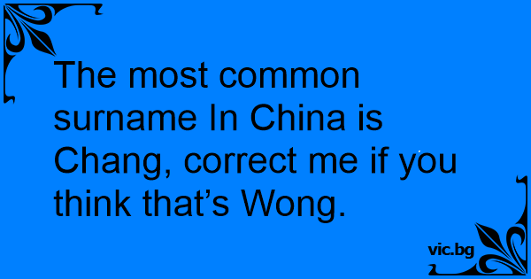 The most common surname In China is Chang, correct me if you think that’s Wong.