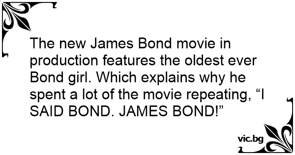 The new James Bond movie in production features the oldest ever Bond girl. Which explains why he spent a lot of the movie repeating, “I SAID BOND. JAMES BOND!”