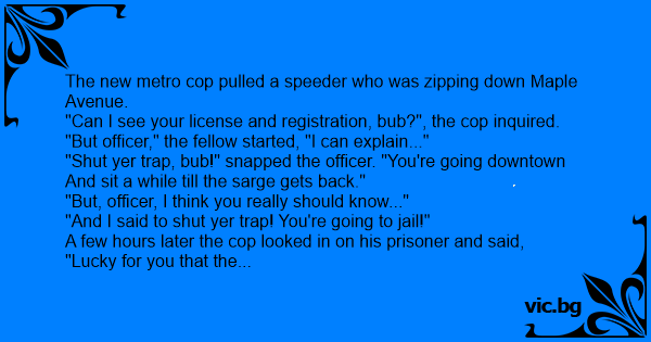 "Shut yer trap, bub!" snapped the officer. "You're going downtown