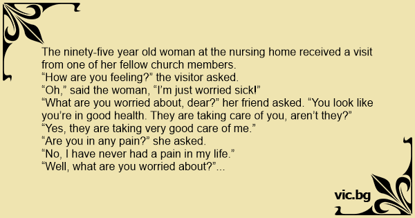 “Oh,” said the woman, “I’m just worried sick!”