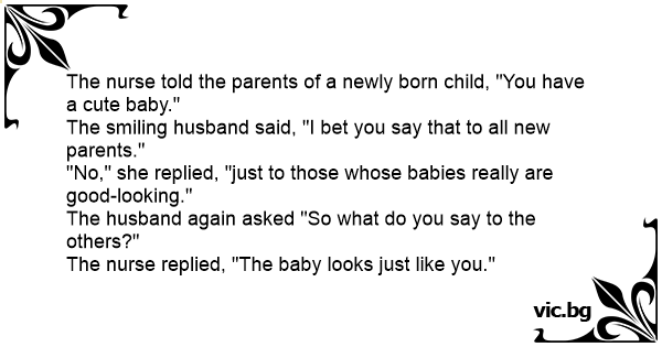 The nurse told the parents of a newly born child, "You have a cute baby."