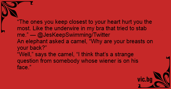 “The ones you keep closest to your heart hurt you the most. Like the underwire in my вrа that tried to stab me.” — @JesKeepSwimming/Twitter